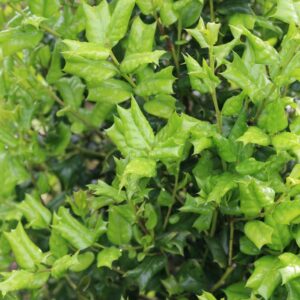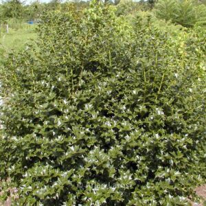 vleermuisbladige hulst met glimmend groen blad. De hoogte na 10 jaar is 3 meter. De bladkleur is groen. Deze plant is goed winterhard. Aanbevolen aantal per vierkante meter : 2. Nederlandse naam : Hulst . . Alleen op bestelling leverbaar. Levertijd minstens 1 week.