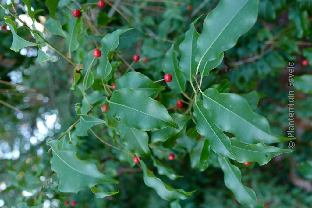 Groenblijvende boom; rode bessen; blad gladrandig, stekelloos Ilex pedunculosa is tweehuizig, dit is de vrouwelijke kloon. Ilex pedunculosa is vooral leuk omdat de bloem/vrucht steeltjes erg lang zijn en de rode bessen derhalve sierlijk tussen de bladeren uit hangen. Voor bevruchting heb je ook ‘Billy’ nodig!. De hoogte na 10 jaar is 3 m. De bloemkleur is cremewit. De bloeiperiode is mei. Deze plant is goed winterhard. Aanbevolen aantal per vierkante meter : 1. Nederlandse naam : Hulst . Deze plant heeft de volgende onderscheiding: Deze soort is in 2015 door ons geintroduceerd als nieuwigheid. . Alleen op bestelling leverbaar. Levertijd minstens 1 week.