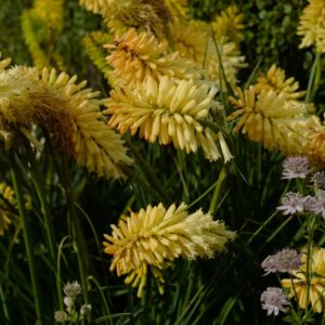 Dichtbezette en lange bloemkaarsen, bronskleurige stelen. De gemiddelde hoogte is 90 cm. De bloemkleur is cremegeel. De bloeiperiode is juni – september. Deze plant is goed winterhard. Aanbevolen aantal per vierkante meter : 9. Nederlandse naam : Vuurpijl . . Alleen op bestelling leverbaar. Levertijd minstens 1 week.