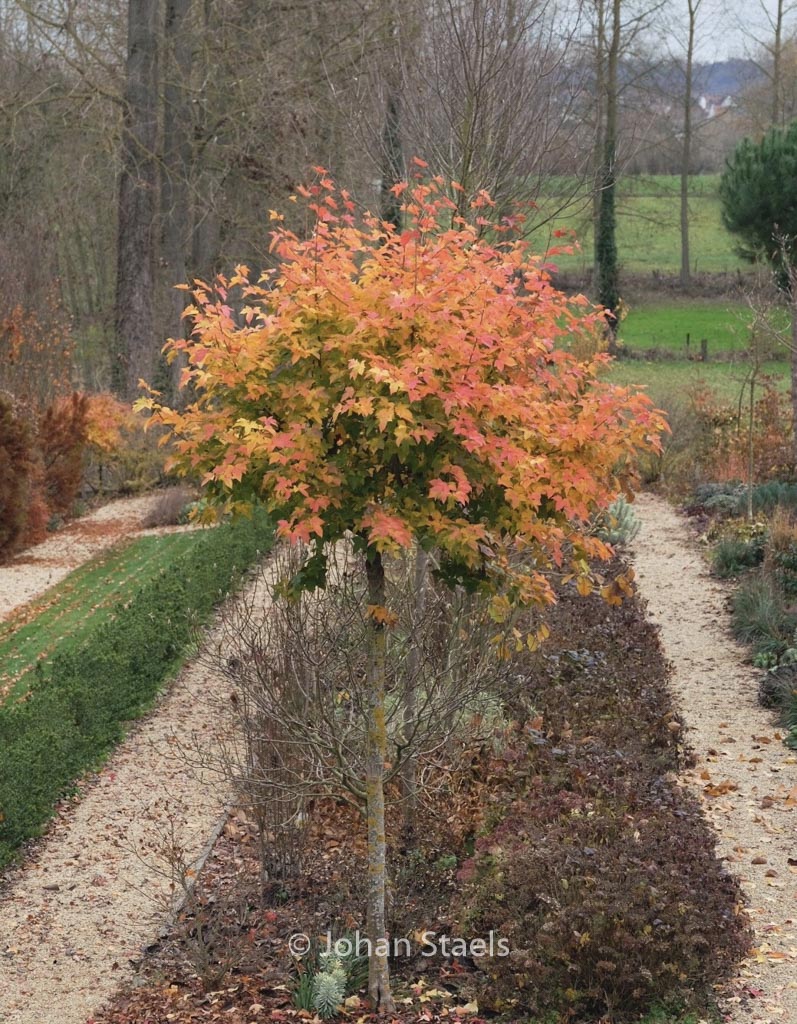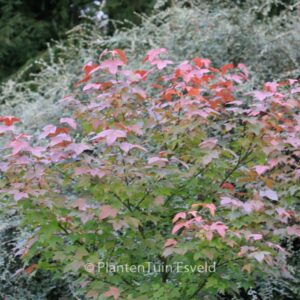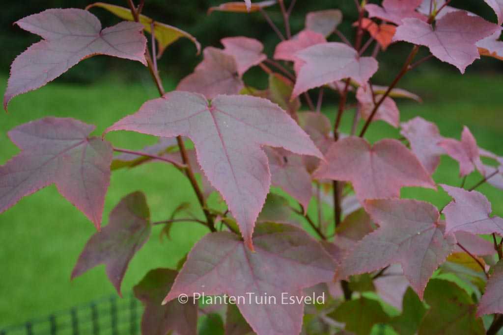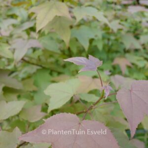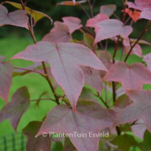 Zuid Chinese drielobbige amberboom met rood voorjaarsblad. De hoogte na 10 jaar is 6 meter. De bladkleur is rood in voorjaar, later groen. De bloeiperiode is april – mei. Deze plant is goed winterhard. Aanbevolen aantal per vierkante meter : 1. Nederlandse naam : Chinese amberboom Mogelijk alternatief : Liquidambar formosana ‘Ellen’. Belangrijkste verschil: Zo goed als hetzelfde. . Alleen op bestelling leverbaar. Levertijd minstens 1 week.