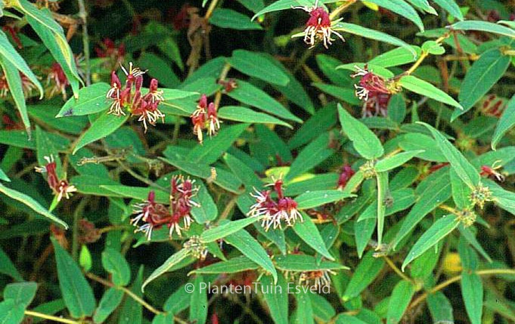 wintergroene kamperfoelie langzaam groeiend, behaard blad. De hoogte na 10 jaar is 200 cm. De bloemkleur is paars/geel. De bloeiperiode is juni – augustus. Deze plant is goed winterhard. Aanbevolen aantal per vierkante meter : 1. Nederlandse naam : Kamperfoelie . . Alleen op bestelling leverbaar. Levertijd minstens 1 week.