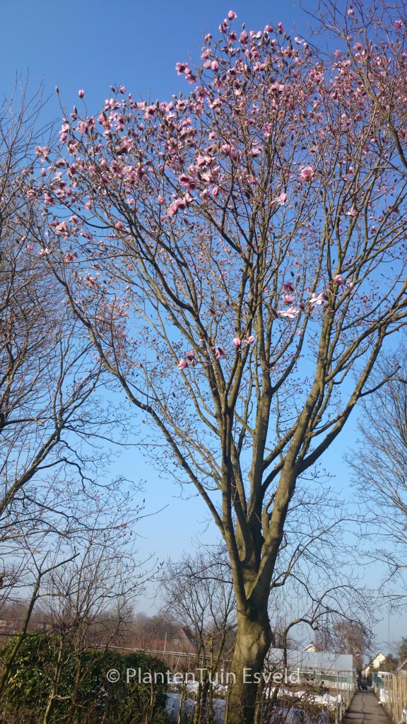 brede struikvormige soort zeer robuust karakter. De hoogte na 10 jaar is 5 meter. De bloemkleur is wit met een vleugje rose. De bloeiperiode is maart – april. Deze plant is goed winterhard. Nederlandse naam : Magnolia . . Alleen op bestelling leverbaar. Levertijd minstens 1 week.