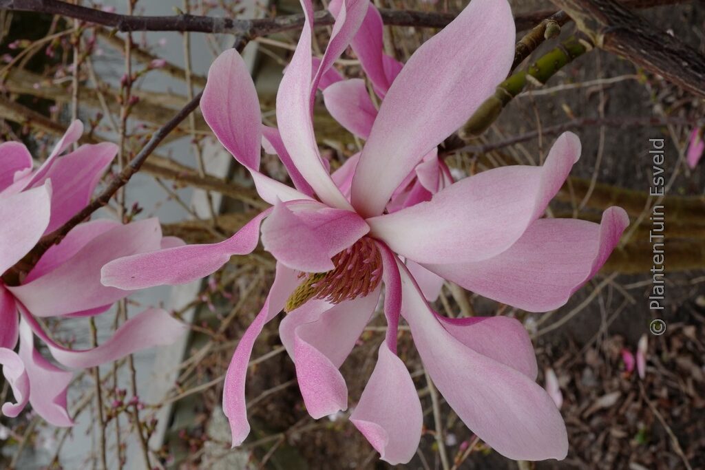 Kleine boomvorm met pastel-kleurige bloemen Magnolia sprengeri is meestal pas na een tiental jaren aan de eerste bloei toe, maar dat valt bij deze Pink Floyd gelukkig reuze mee. De bloemen zijn uitgesproken groot en de bloembladeren klappen al vrij spoedig open. Slordig? Of juist elegant? Kwestie van smaak. De hoogte na 10 jaar is 4 m. De bloemkleur is lichtroze; basis roze. De bloeiperiode is april – mei. Deze plant is zeer winterhard. Aanbevolen aantal per vierkante meter : 1. Nederlandse naam : Magnolia . . Is aanwezig op de kwekerij. Kijk ook op de voorraadlijst op onze site.