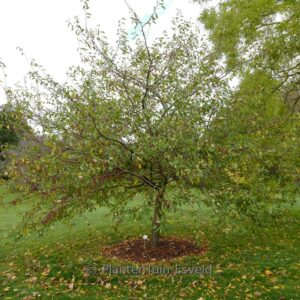 sierappel uit China met piepkleine decoratieve appeltjes Als jonge boom nog wel enigszins opgaand groeiend, maar later krijgt deze rijkbloeiende sierappel een ronde kroon. De hoogte na 10 jaar is 5 m. De bloemkleur is rosewit. De bloeiperiode is mei – juni. Deze plant is goed winterhard. Aanbevolen aantal per vierkante meter : 1. Nederlandse naam : Sierappel . Deze plant heeft de volgende onderscheiding: AGM, Award of Garden Merit, 1993. . Is aanwezig op de kwekerij. Kijk ook op de voorraadlijst op onze site.