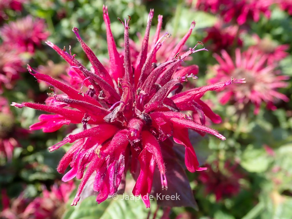 Dwerg-bergamotplant met een stralende bloemkleur. De gemiddelde hoogte is 40 cm. De bloemkleur is vuurrood. De bloeiperiode is juli – augustus. Deze plant is zeer winterhard. Aanbevolen aantal per vierkante meter : 7. Nederlandse naam : Bergamotplant . . Alleen op bestelling leverbaar. Levertijd minstens 1 week.
