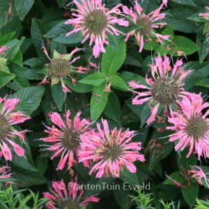 Vrij meeldauw-resistent! Goede selectie met sprekende kleur. De gemiddelde hoogte is 85 cm. De bloemkleur is stralend rose. De bloeiperiode is juli – september. Deze plant is zeer winterhard. Aanbevolen aantal per vierkante meter : 11. Nederlandse naam : Bergamotplant . Deze plant heeft de volgende onderscheiding: AGM, Award of Garden Merit, 2001, tevens 3 sterren (uitstekend) veldkeuring van de Koninklijke Vereniging voor Boskoopse Culturen 1999. . Alleen op bestelling leverbaar. Levertijd minstens 1 week.