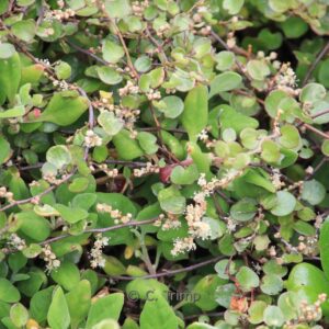 kruipende struik met draadunne takjes. De piepkleine ronde blaadjes maken de Muehlenbeckia een zeer herkenbare bodembedekker. Ondertussen zijn we er achter dat deze grappige bodembedekker ook gewoon voldoende winterhard is voor ons opgewarmde klimaat. De hoogte na 10 jaar is 30 cm. De bloemkleur is groenig. Deze plant is goed winterhard. Aanbevolen aantal per vierkante meter : 3. . . Alleen op bestelling leverbaar. Levertijd minstens 1 week.