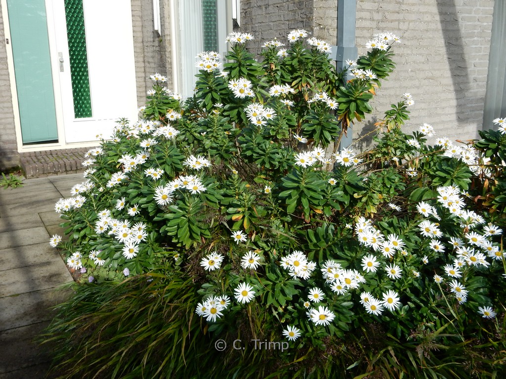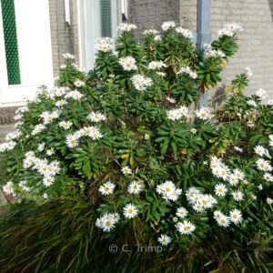halfwintergroene Japanse margriet, borderplant of snijbloem. De gemiddelde hoogte is 100 cm. De bloemkleur is wit. De bloeiperiode is september – oktober. Deze plant is goed winterhard. Aanbevolen aantal per vierkante meter : 1. Nederlandse naam : Japanse margriet . . Alleen op bestelling leverbaar. Levertijd minstens 1 week.