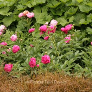 dubbelbloemige pioen. De gemiddelde hoogte is 60 cm. De bloemkleur is diep zalmrose. De bloeitijd is mei – juni. Deze plant is zeer winterhard. Aanbevolen aantal per vierkante meter : 5. Dit artikel is slechts in kleine hoeveelheden beschikbaar en kan plotseling niet meer leverbaar blijken. Nederlandse naam : Pioenroos . Deze plant heeft de volgende onderscheiding: 3 sterren (uitstekend) veldkeuring van de Koninklijke Vereniging voor Boskoopse Culturen 1998. . Alleen op bestelling leverbaar. Levertijd minstens 1 week.