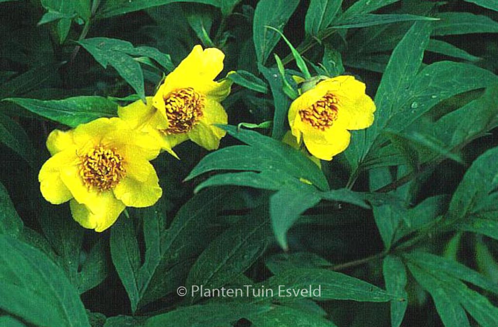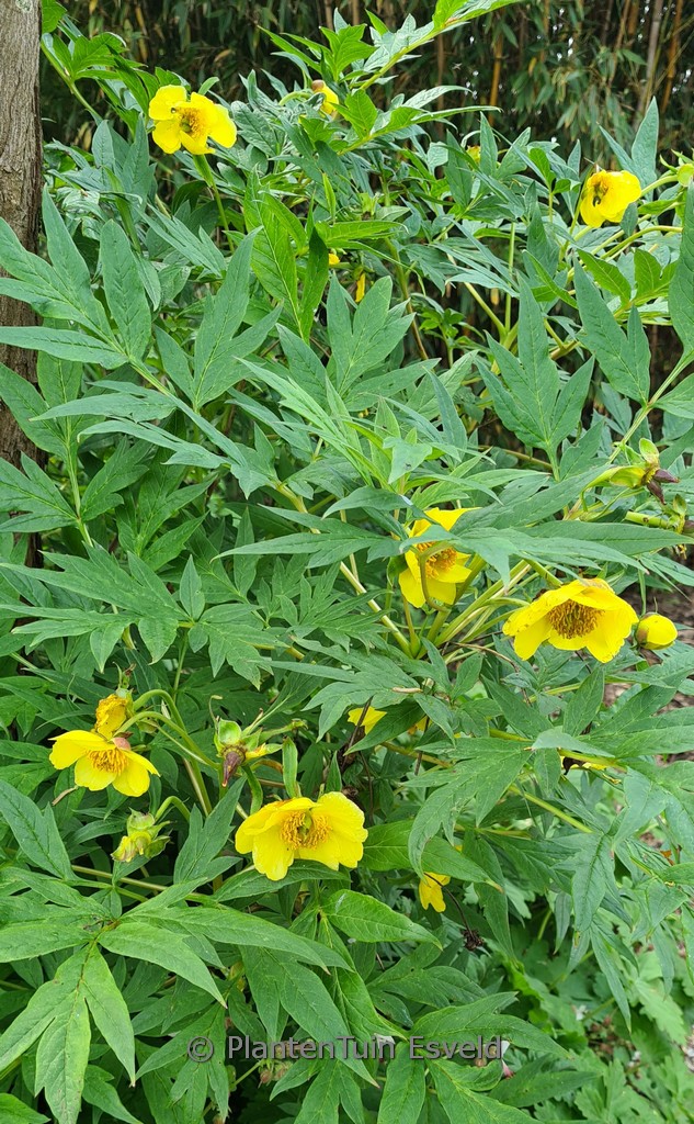 boompioen enkelbloemige wilde soort die het beste groeit in de lichte schaduw. Het blad is decoratief en frisgroen, dus ook buiten de bloeitijd is dit een goede heester voor de bostuin. Heester? Ja deze boompioen is geen vasteplant, maar een struik die wel bijna manshoog kan worden op termijn. De hoogte na 10 jaar is 200 cm. De bloemkleur is geel. De bloeiperiode is mei – juli. Deze plant is goed winterhard. Aanbevolen aantal per vierkante meter : 2. Nederlandse naam : Tibetaanse pioen . . Is aanwezig op de kwekerij. Kijk ook op de voorraadlijst op onze site.