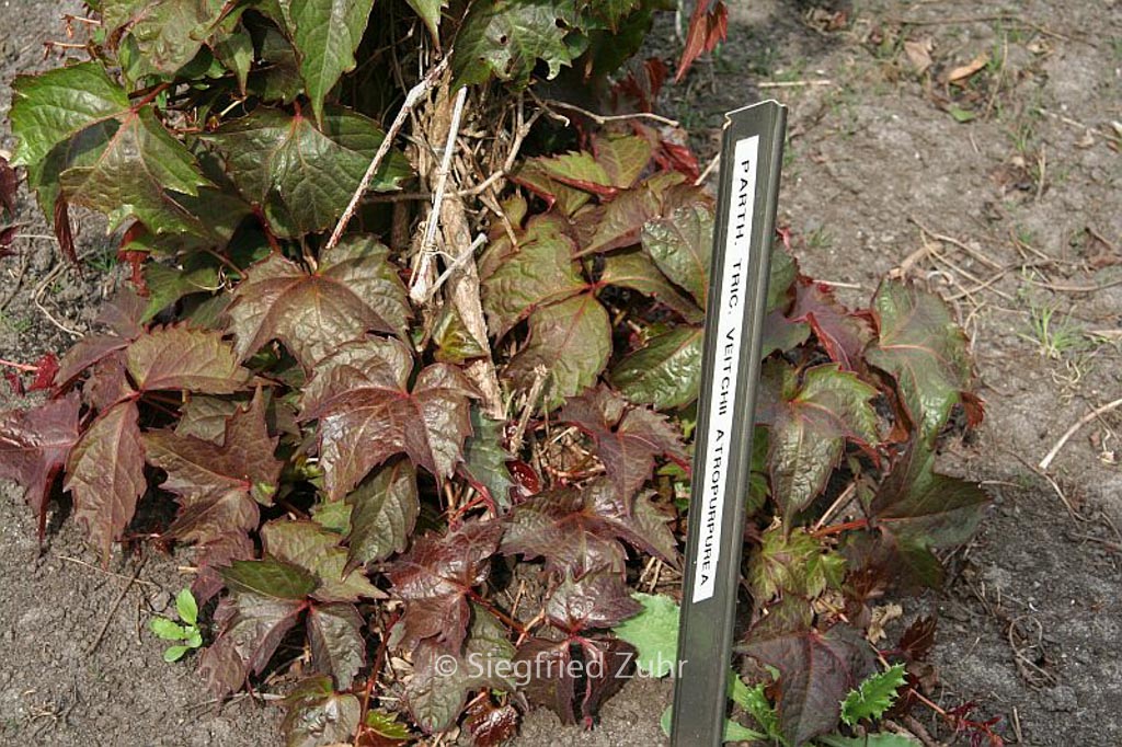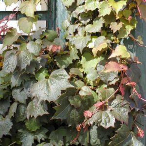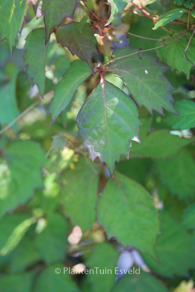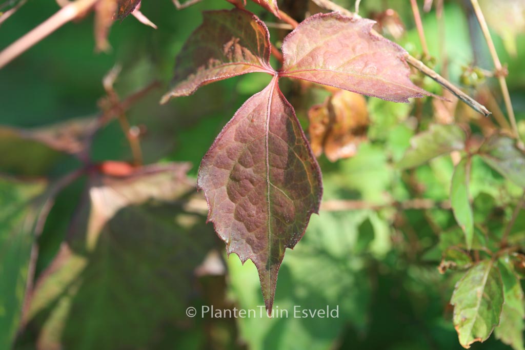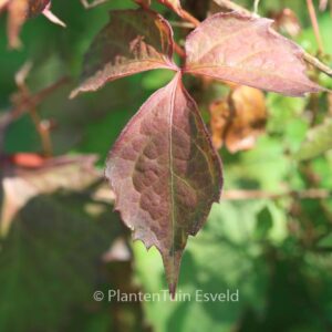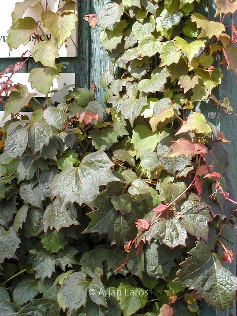 wilde wingerd zelfhechtend, herfstkleur In het voorjaar loopt deze selectie rood uit, maar het zomerblad is groen. Uitstekende bijenplant. De hoogte na 10 jaar is 500 cm. De bladkleur is groen met rode groeitoppen. Deze plant is zeer winterhard. Aanbevolen aantal per vierkante meter : 1. Nederlandse naam : Oosterse wilde wingerd . . Alleen op bestelling leverbaar. Levertijd minstens 1 week.