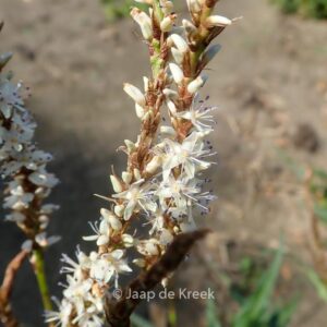 Spits, smal, stevig donker groen blad; licht overhangende aren Rijkbloeiende, uitstekende selectie. De gemiddelde hoogte is 90 cm. De bloemkleur is wit. De bloeiperiode is juli – oktober. Deze plant is zeer winterhard. Aanbevolen aantal per vierkante meter : 5. Nederlandse naam : Doorgroeide duizendknoop . . Alleen op bestelling leverbaar. Levertijd minstens 1 week.