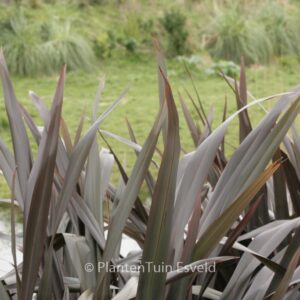 kuipplant met paarse bladeren. De hoogte na 10 jaar is 1. 5 meter. De bloemkleur is rood. De bloeiperiode is juni – augustus. Deze plant is matig winterhard. Aanbevolen aantal per vierkante meter : 4. Nederlandse naam : Nieuw-zeelands vlas . Deze plant heeft de volgende onderscheiding: AGM, Award of Garden Merit, 1993. . Alleen op bestelling leverbaar. Levertijd minstens 1 week.