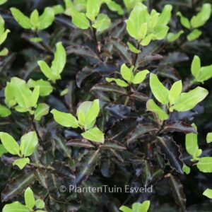 dwergheester, wintergroen voor een beschutte standplaats Het aardige aan deze Pittosporum is dat de topblaadjes groen zijn en het onderblad juist rood. Meestal is dat andersom bij planten. Pittosporum is een elegante wintergroene struik die winterharder is dan we vaak denken. Wij passen hem dan ook steeds vaker toe. De hoogte na 10 jaar is 60 cm. De bladkleur is glimmend roodbruin. Deze plant is matig winterhard. Aanbevolen aantal per vierkante meter : 3. Nederlandse naam : Australische laurier . Deze plant heeft de volgende onderscheiding: AGM, Award of Garden Merit, 1993. . Alleen op bestelling leverbaar. Levertijd minstens 1 week.