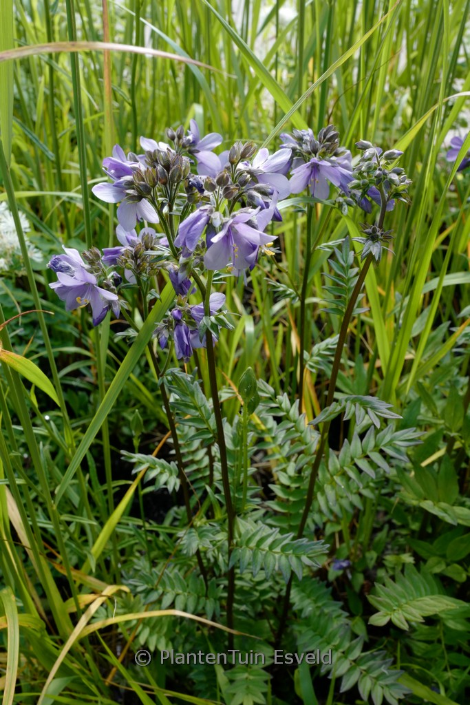 Jacobsladder met donker voorjaarsblad, dat later groen is. De gemiddelde hoogte is 50 cm. De bloemkleur is violetblauw. De bloeiperiode is mei – juni. Deze plant is goed winterhard. Aanbevolen aantal per vierkante meter : 9. Nederlandse naam : Jakobsladder . . Alleen op bestelling leverbaar. Levertijd minstens 1 week.