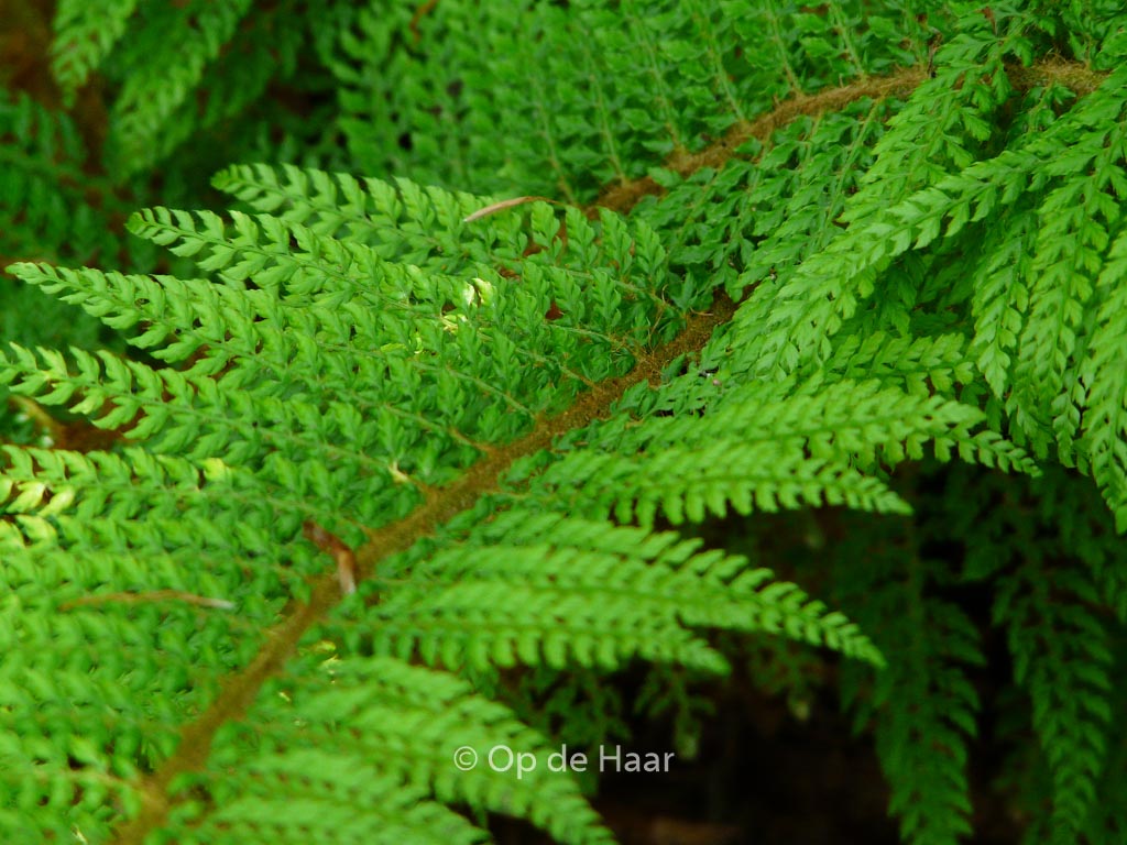 Dwergje met stevige gedron gen wintergroene veren. De gemiddelde hoogte is 20 cm. Deze plant is zeer winterhard. Aanbevolen aantal per vierkante meter : 11. Nederlandse naam : Zachte naaldvaren . . Alleen op bestelling leverbaar. Levertijd minstens 1 week.