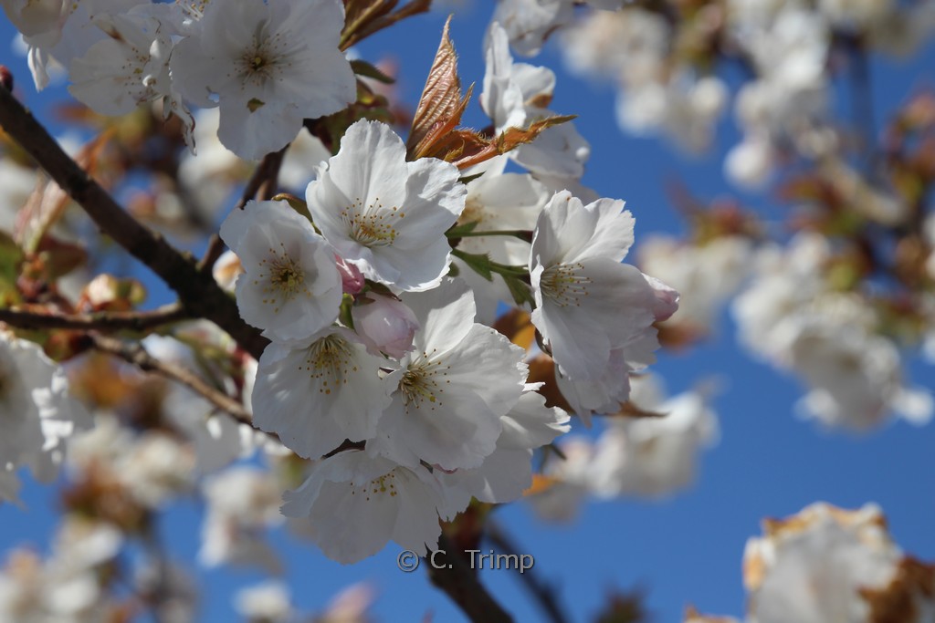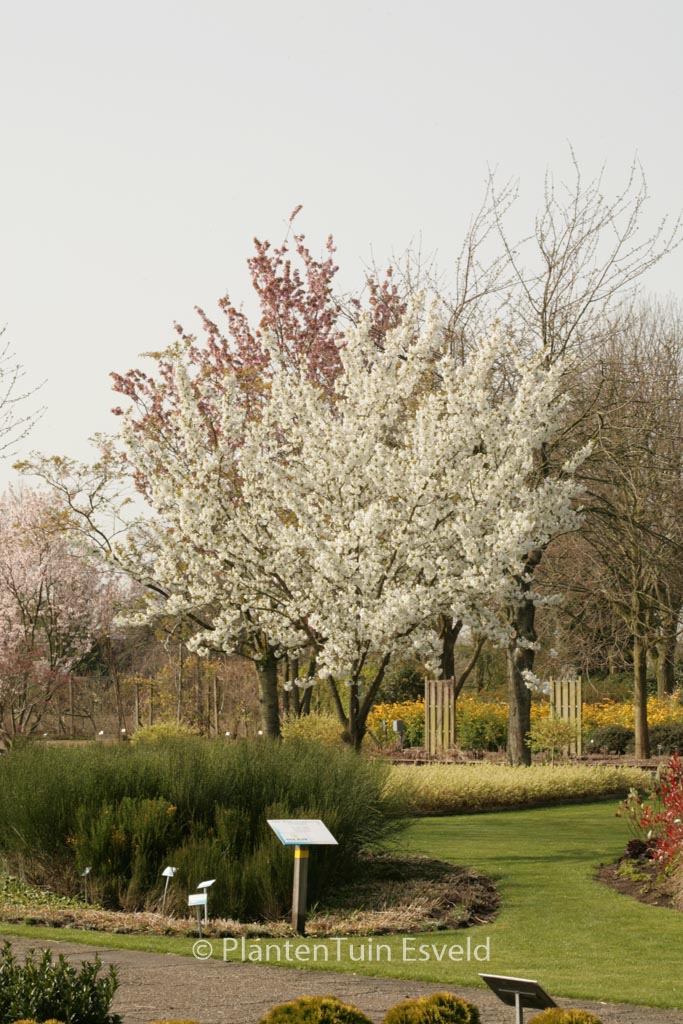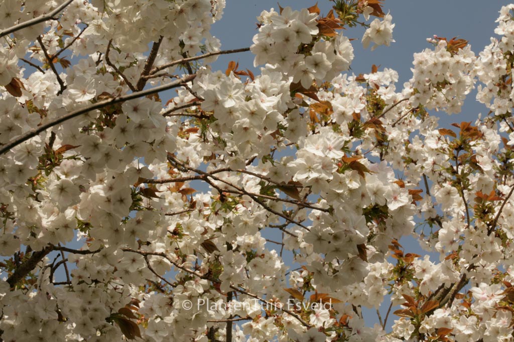 flinke Japanse sierkers met koperrode jonge bladeren Betekenis van de Japanse naam: ‘dikke witte’. De hoogte na 10 jaar is 750 cm. De bloemkleur is wit. De bloeiperiode is april. Deze plant is zeer winterhard. Aanbevolen aantal per vierkante meter : 1. Nederlandse naam : Japanse sierkers . Deze plant heeft de volgende onderscheiding: AGM, Award of Garden Merit, 1993. . Alleen op bestelling leverbaar. Levertijd minstens 1 week.