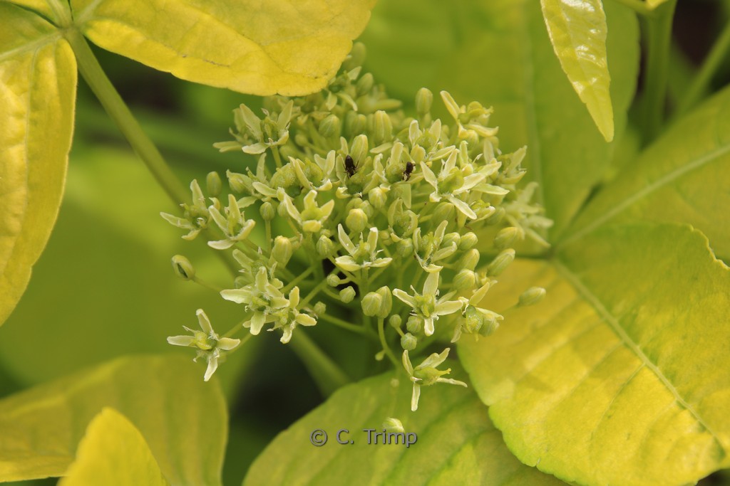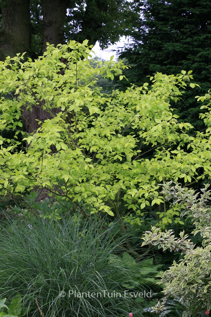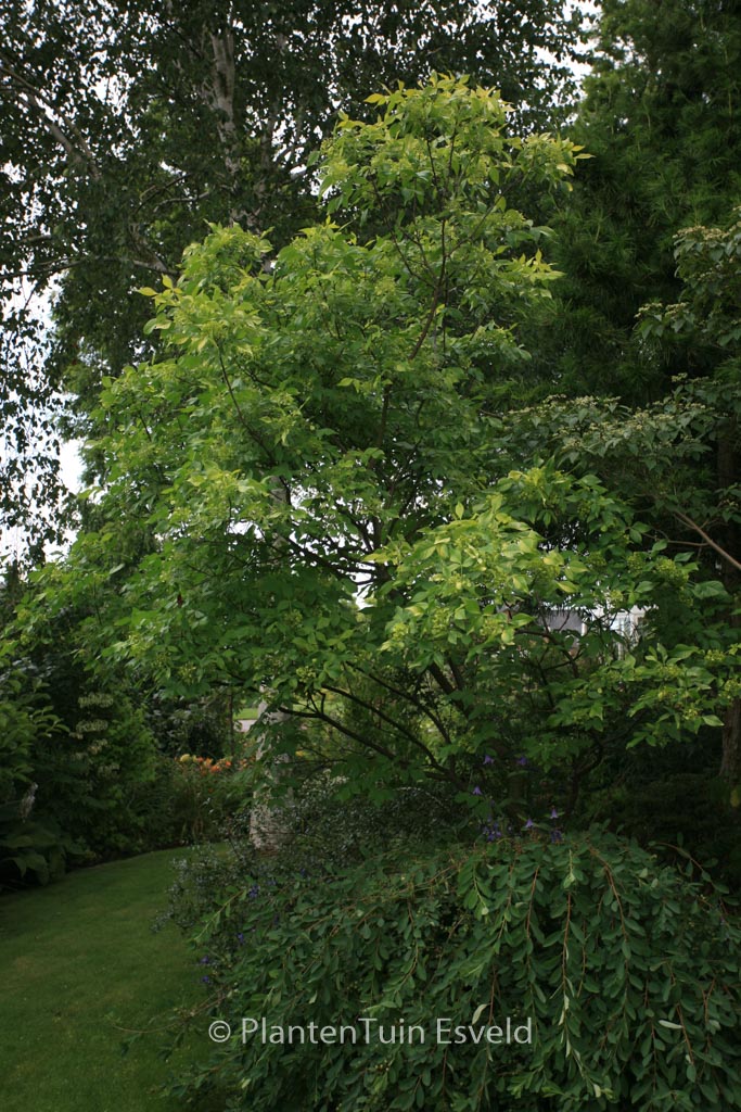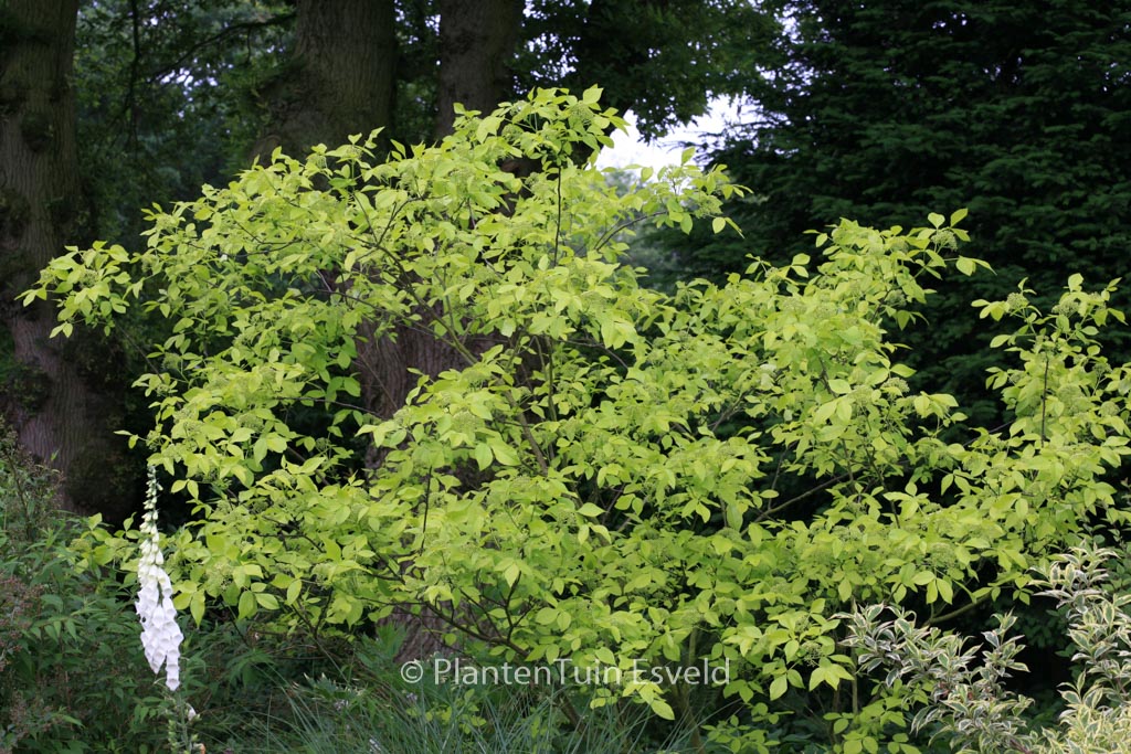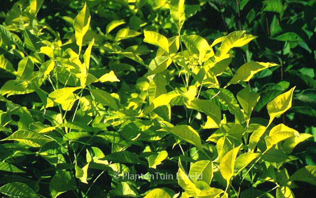 geelbladige lederstruik. De hoogte na 10 jaar is 300 cm. De bloemkleur is wit. De bloeiperiode is mei. Deze plant is zeer winterhard. Nederlandse naam : Lederstruik . Deze plant heeft de volgende onderscheiding: AGM, Award of Garden Merit, 1993. . Alleen op bestelling leverbaar. Levertijd minstens 1 week.