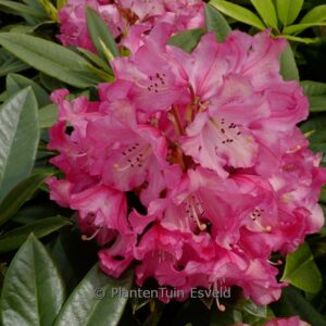 Insigne-hybride met zeer stevig blad en compacte groei. De hoogte na 10 jaar is 125 cm. De bloemkleur is rose. De bloeiperiode is mei. Deze plant is zeer winterhard. Aanbevolen aantal per vierkante meter : 1. Nederlandse naam : Rhododendron . . Is aanwezig op de kwekerij. Kijk ook op de voorraadlijst op onze site.