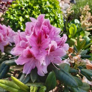 Caucasicum-hybride zon/halfschaduw, humeuze grond. De hoogte na 10 jaar is 2. 5 meter. De bloemkleur is donkerrose. De bloeiperiode is april – mei. Deze plant is zeer winterhard. Aanbevolen aantal per vierkante meter : 2. Nederlandse naam : Rhododendron . Deze plant heeft de volgende onderscheiding: Getuigschrift van Verdienste van de Koninklijke Vereniging voor Boskoopse Culturen 1957. . Alleen op bestelling leverbaar. Levertijd minstens 1 week.