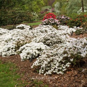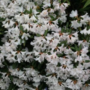 Carolinianum-hybride voor zon/halfschaduw, humeuze grond. De hoogte na 10 jaar is 100 cm. De bloemkleur is wit. De bloeiperiode is mei. Deze plant is zeer winterhard. Aanbevolen aantal per vierkante meter : 3. Nederlandse naam : Rhododendron . Deze plant heeft de volgende onderscheiding: AGM, Award of Garden Merit, 1993. . Alleen op bestelling leverbaar. Levertijd minstens 1 week.