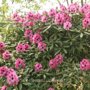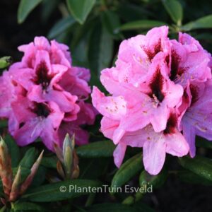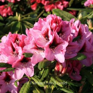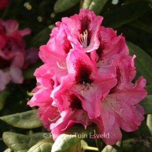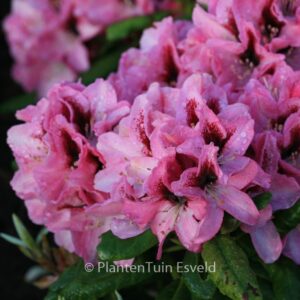 sterke tuinhybride met mooi honingmerk in bloem. De hoogte na 10 jaar is 1. 5 meter. De bloemkleur is rose met donkere vlek. De bloeiperiode is mei. Deze plant is zeer winterhard. Aanbevolen aantal per vierkante meter : 1. Nederlandse naam : Rhododendron . . Alleen op bestelling leverbaar. Levertijd minstens 1 week. .