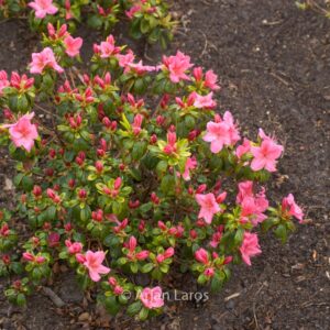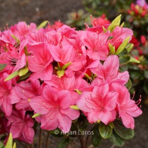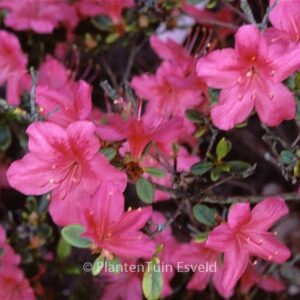kleinbloemige Japanse azalea. De hoogte na 10 jaar is 75 cm. De bloemkleur is rose. De bloeiperiode is mei. Deze plant is goed winterhard. Nederlandse naam : Rhododendron . . Is aanwezig op de kwekerij. Kijk ook op de voorraadlijst op onze site.