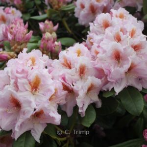 Fortunei-hybride humeuze grond, zon/halfschaduw. De hoogte na 10 jaar is 250 cm. De bloemkleur is rose/geel. De bloeiperiode is mei. Deze plant is zeer winterhard. Aanbevolen aantal per vierkante meter : 1. Nederlandse naam : Rhododendron . Deze plant heeft de volgende onderscheiding: Getuigschrift van Verdienste van de Koninklijke Vereniging voor Boskoopse Culturen 1981. . Alleen op bestelling leverbaar. Levertijd minstens 1 week.