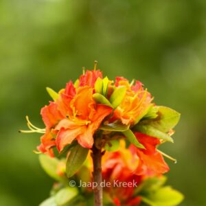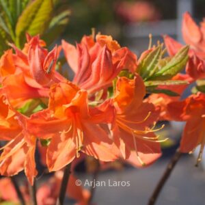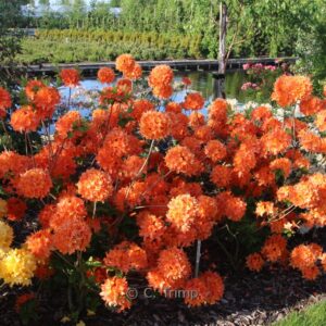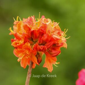 geurende bladverliezende azalea. De hoogte na 10 jaar is 125 cm. De bloemkleur is lichtoranj. De bloeiperiode is april – mei. Deze plant is goed winterhard. Aanbevolen aantal per vierkante meter : 2. Nederlandse naam : Rhododendron . . Is aanwezig op de kwekerij. Kijk ook op de voorraadlijst op onze site.
