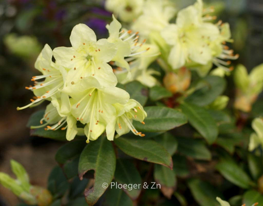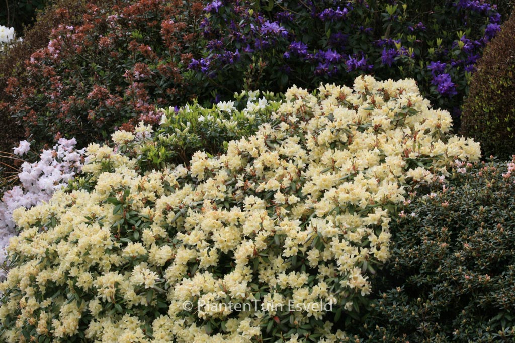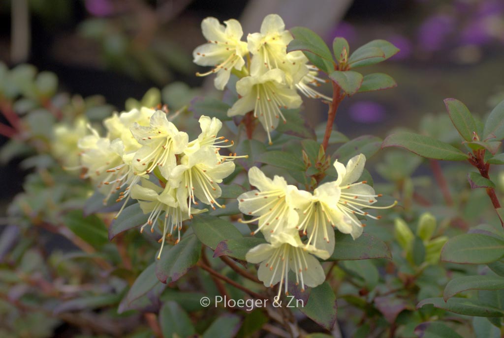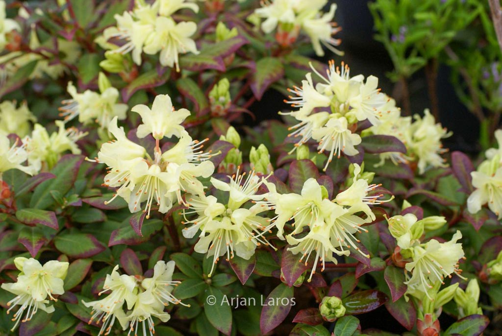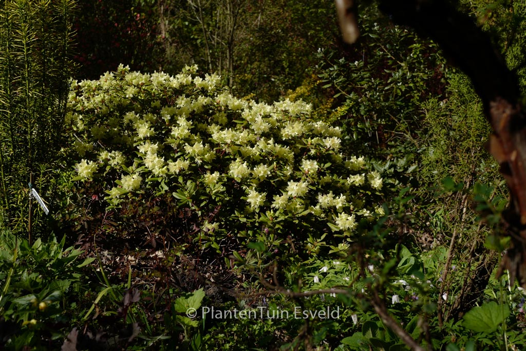 Keiskei-hybride, een zeer laag blijvende rhododendron De bladeren kunnen in de winter, zeker op een wat zonniger standplaats mooi rood verkleuren. Een extra kwaliteit van Princess Anne. De hoogte na 10 jaar is 40 cm. De bloemkleur is geel. De bloeiperiode is april. Deze plant is zeer winterhard. Aanbevolen aantal per vierkante meter : 7. Nederlandse naam : Rhododendron Mogelijk alternatief : Rhododendron ‘Shamrock’. Belangrijkste verschil: Rhododendron ‘Princess Anne’ blijft lager. Deze plant heeft de volgende onderscheiding: AGM, Award of Garden Merit, 1993. . Is aanwezig op de kwekerij. Kijk ook op de voorraadlijst op onze site.