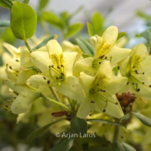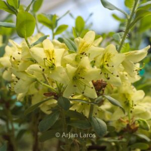 Laatbloeiende, laag blijvende dwergsoort De zachtgele bloemetjes hebben een blosje roze. De hoogte na 10 jaar is 75 cm. De bloemkleur is cremegeel. De bloeiperiode is juni – juli. Deze plant is goed winterhard. Aanbevolen aantal per vierkante meter : 3. Nederlandse naam : Rhododendron . . Alleen op bestelling leverbaar. Levertijd minstens 1 week.