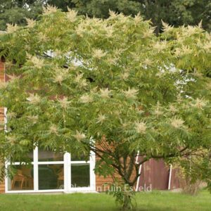 Chinese notengalboom; struik of kleine boom; oranje-rode herfstkleur en dito bessen; wordt veel gebruikt in de traditionelle Chinese geneeskunde. De hoogte na 10 jaar is 4 m. De bloemkleur is cremekleurig. De bloeiperiode is mei – juni. Deze plant is goed winterhard. Aanbevolen aantal per vierkante meter : 1. Nederlandse naam : Azijnboom . . Alleen op bestelling leverbaar. Levertijd minstens 1 week.