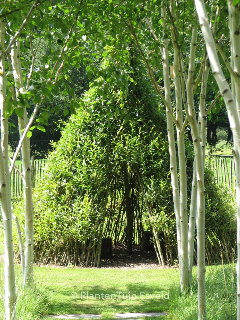 gewone wilg Ook in zwaardere maten leverbaar, prijzen op aanvraag. De hoogte na 10 jaar is 8 meter. De bladkleur is grijsgroen. Deze plant is zeer winterhard. Aanbevolen aantal per vierkante meter : 1. Nederlandse naam : Schietwilg . . Alleen op bestelling leverbaar. Levertijd minstens 1 week.