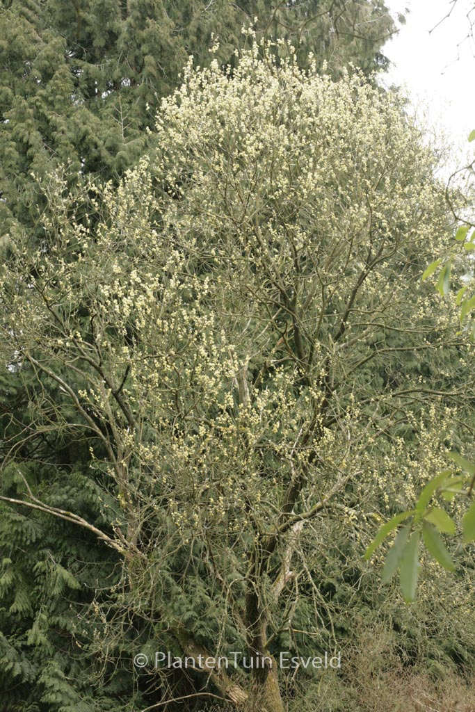 grijze wilg. De hoogte na 10 jaar is 350 cm. De bladkleur is grijsgroen. Deze plant is zeer winterhard. Nederlandse naam : Grauwe wilg . . Alleen op bestelling leverbaar. Levertijd minstens 1 week.