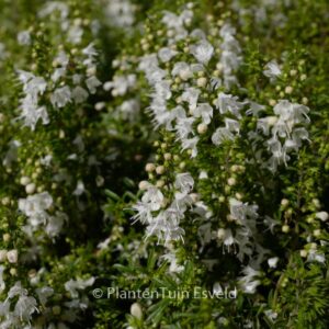 Kruipend en aromatisch berg-bonenkruid; zonnig en droog. De gemiddelde hoogte is 20 cm. De bloemkleur is wit. De bloeiperiode is augustus – oktober. Deze plant is goed winterhard. Nederlandse naam : Kruipend bonenkruid . . Alleen op bestelling leverbaar. Levertijd minstens 1 week.