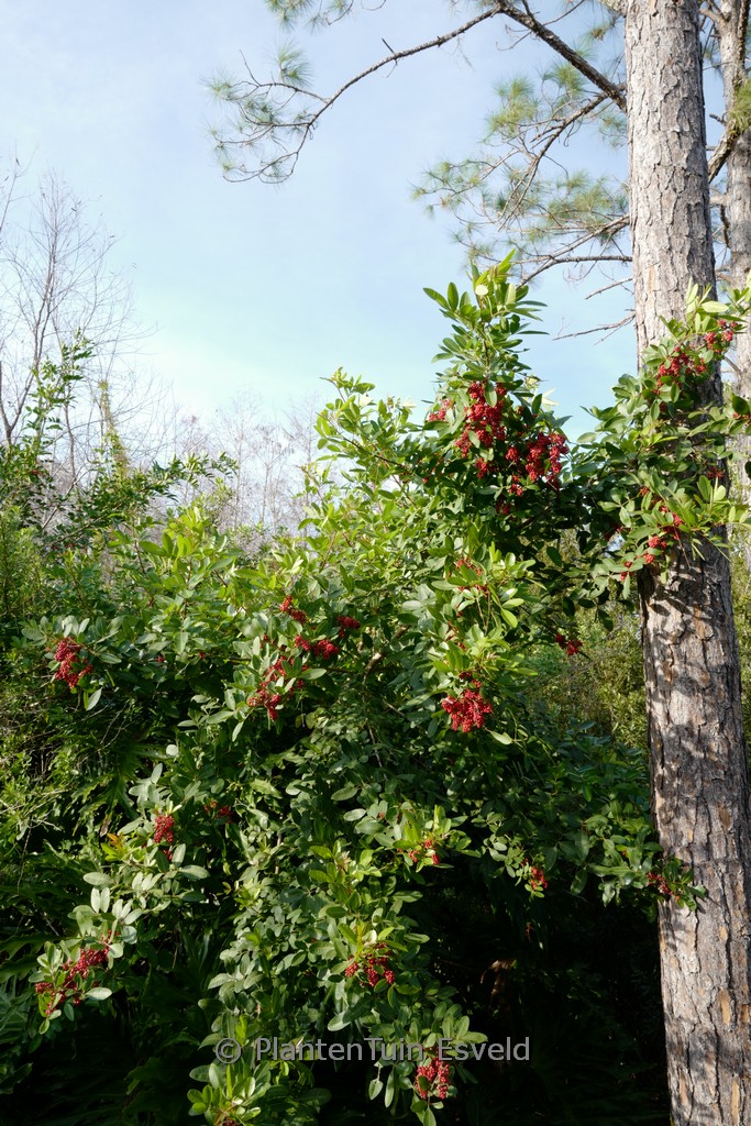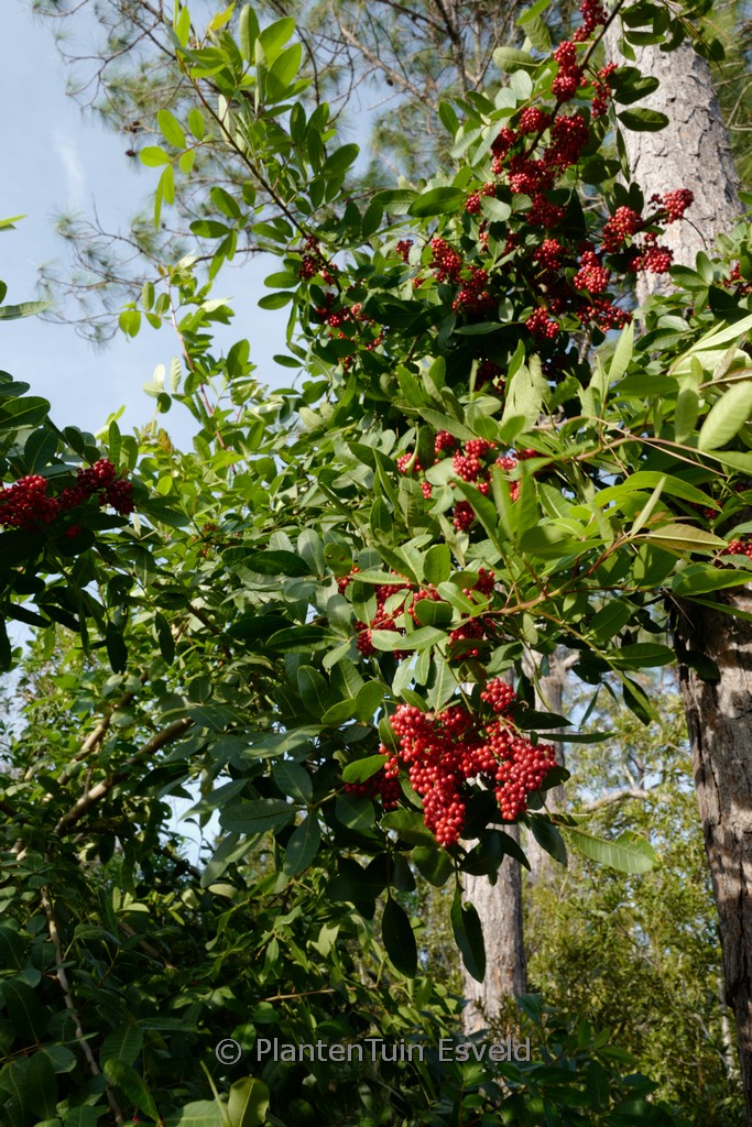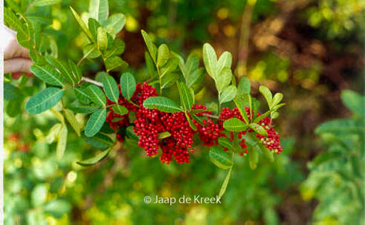 Roze peperstruik uit Brazilie met kruidig geurend blad en eetbare roze bessen; groeit breder en vertakter dan Schinus molle. De hoogte na 10 jaar is 3 m. De bloemkleur is gelig. De bloeiperiode is mei – juni. Deze plant is matig winterhard. Aanbevolen aantal per vierkante meter : 1. . . Alleen op bestelling leverbaar. Levertijd minstens 1 week.