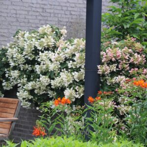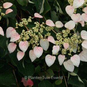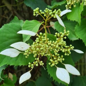 pluim-klimhortensia voor halfschaduw/schaduw, zelfhechtend. De hoogte na 10 jaar is 2. 5 meter. De bloemkleur is wit. De bloeiperiode is juli – augustus. Deze plant is goed winterhard. Aanbevolen aantal per vierkante meter : 1. Nederlandse naam : Pluim-klimhortensia . . Alleen op bestelling leverbaar. Levertijd minstens 1 week.