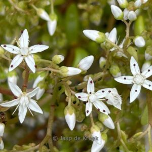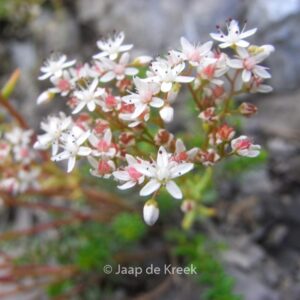 Tapijtvormend wit vetkruid ; zonnig en voedselarm planten. De gemiddelde hoogte is 15 cm. De bloemkleur is wit. De bloeiperiode is juni – juli. Deze plant is zeer winterhard. Aanbevolen aantal per vierkante meter : 15. Nederlandse naam : Wit vetkruid . . Alleen op bestelling leverbaar. Levertijd minstens 1 week.