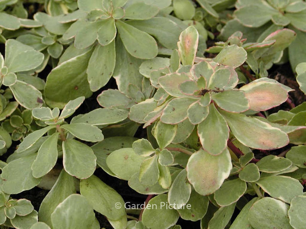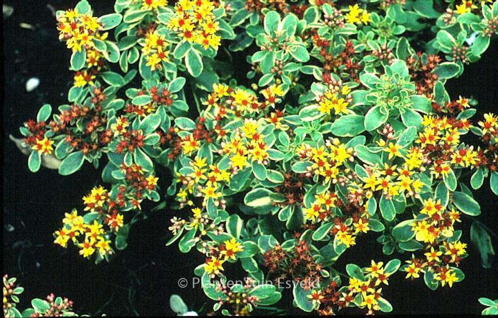 Blad met een fijne cremekleurige rand. De gemiddelde hoogte is 20 cm. De bloemkleur is geel. De bloeiperiode is juli – augustus. Deze plant is goed winterhard. Aanbevolen aantal per vierkante meter : 9. Nederlandse naam : Kamtsjatka-vetkruid . Deze plant heeft de volgende onderscheiding: AGM, Award of Garden Merit, 1993. . Alleen op bestelling leverbaar. Levertijd minstens 1 week.