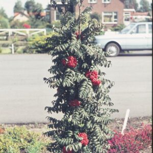 zuilvormige lijsterbes geschikt voor kleine tuin. De hoogte na 10 jaar is 400 cm. De beskleur is oranjerood. De besperiode is september – oktober. Deze plant is zeer winterhard. Aanbevolen aantal per vierkante meter : 1. Nederlandse naam : Wilde lijsterbes . . Alleen op bestelling leverbaar. Levertijd minstens 1 week.