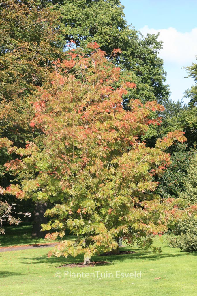 Japanse lijsterbes met erg mooie herfstkleur en mooie vruchten. De hoogte na 10 jaar is 6 meter. De vruchtkleur is helder-oranje. De vruchtperiode is september – oktober. Deze plant is zeer winterhard. Aanbevolen aantal per vierkante meter : 1. Nederlandse naam : Japanse lijsterbes . . Alleen op bestelling leverbaar. Levertijd minstens 1 week. .