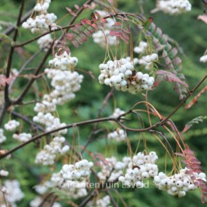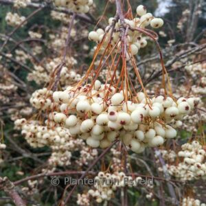 Chinese struik lijsterbes met opvallende witte vruchten. De hoogte na 10 jaar is 3 meter. De vruchtkleur is wit. De bloeiperiode is mei. Deze plant is zeer winterhard. Aanbevolen aantal per vierkante meter : 1. Nederlandse naam : Witte lijsterbes . Deze plant heeft de volgende onderscheiding: AGM, Award of Garden Merit, 2012. . Alleen op bestelling leverbaar. Levertijd minstens 1 week.