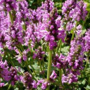 Rotsplant voor lichte schaduw. De gemiddelde hoogte is 20 cm. De bloemkleur is violet. De bloeiperiode is juli – augustus. Deze plant is goed winterhard. Aanbevolen aantal per vierkante meter : 7. Dit artikel is slechts in kleine hoeveelheden beschikbaar en kan plotseling niet meer leverbaar blijken. Nederlandse naam : Betonie . . Alleen op bestelling leverbaar. Levertijd minstens 1 week.