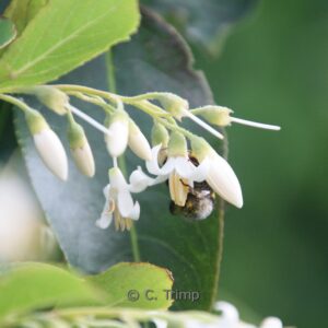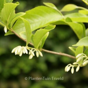 Grote struik uit China met knikkende sterretjes-bloemen. De hoogte na 10 jaar is 3 meter. De bloemkleur is wit. De bloeiperiode is mei – juni. Deze plant is goed winterhard. Nederlandse naam : Storaxboom . . Alleen op bestelling leverbaar. Levertijd minstens 1 week.