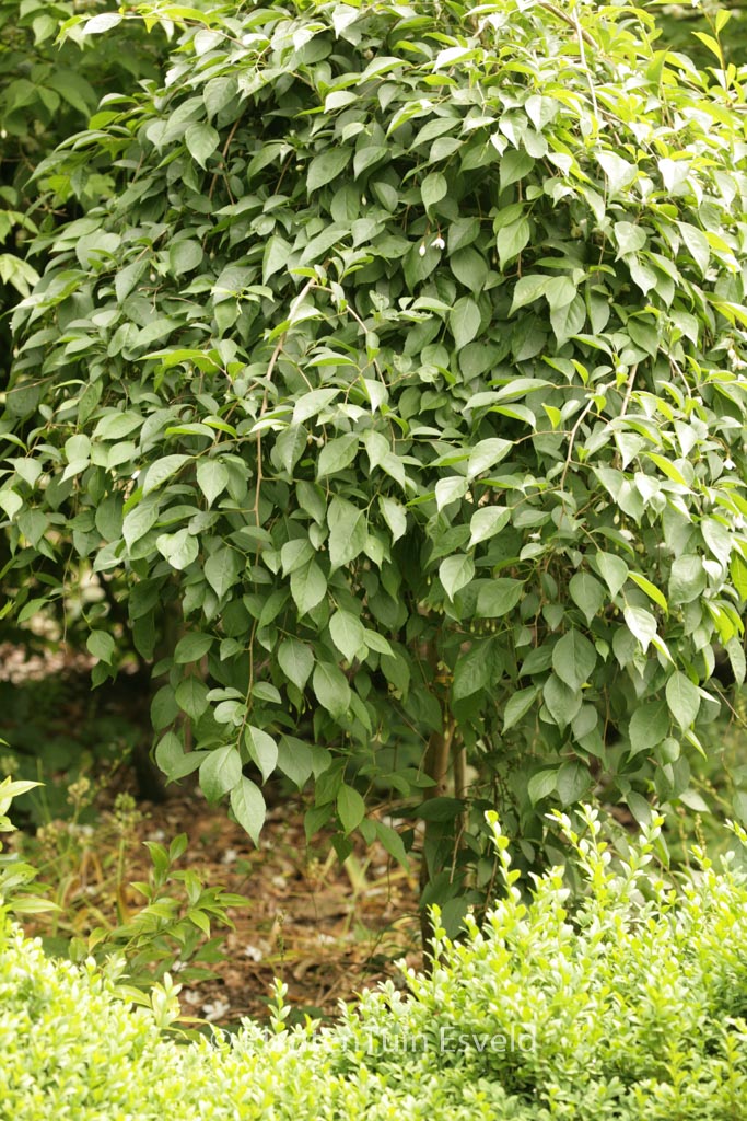 treurvorm Storaxboom met paddestoelvormige groeiwijze. De hoogte na 10 jaar is 100 cm. De bloemkleur is wit. De bloeiperiode is april – mei. Deze plant is zeer winterhard. Aanbevolen aantal per vierkante meter : 1. Nederlandse naam : Japanse storaxboom . . Alleen op bestelling leverbaar. Levertijd minstens 1 week.
