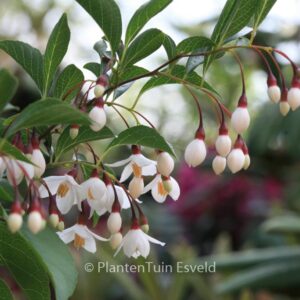 Rood vruchtbeginsel en donker blauwgroen blad. De hoogte na 10 jaar is 3 meter. De bloemkleur is wit. De bloeiperiode is juni. Deze plant is goed winterhard. Aanbevolen aantal per vierkante meter : 1. Nederlandse naam : Japanse storaxboom Mogelijk alternatief : Styrax japonicus. Belangrijkste verschil: Styrax japonicus ‘Wendy’ heeft rode bloemhoofdjes. Deze plant heeft de volgende onderscheiding: Deze soort is in 2011 door ons geintroduceerd als nieuwigheid. . Is aanwezig op de kwekerij. Kijk ook op de voorraadlijst op onze site.