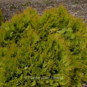 kegelvormige semidwergvorm opvallende winterkleur. De hoogte na 10 jaar is 200 cm. De loofkleur is geel, oranjegeel in winter. Deze plant is zeer winterhard. Aanbevolen aantal per vierkante meter : 1. Nederlandse naam : Westerse levensboom . Deze plant heeft de volgende onderscheiding: AGM, Award of Garden Merit, 1993. . Alleen op bestelling leverbaar. Levertijd minstens 1 week.