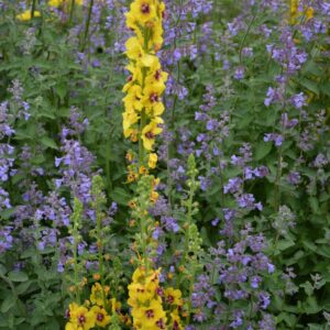 Zwarte toorts met een viltig-grijze bladonderkant. De gemiddelde hoogte is 1 meter. De bloemkleur is geel met lilarode meeldraden. De bloeiperiode is juni – augustus. Deze plant is goed winterhard. Aanbevolen aantal per vierkante meter : 5. Nederlandse naam : Zwarte toorts . . Alleen op bestelling leverbaar. Levertijd minstens 1 week.