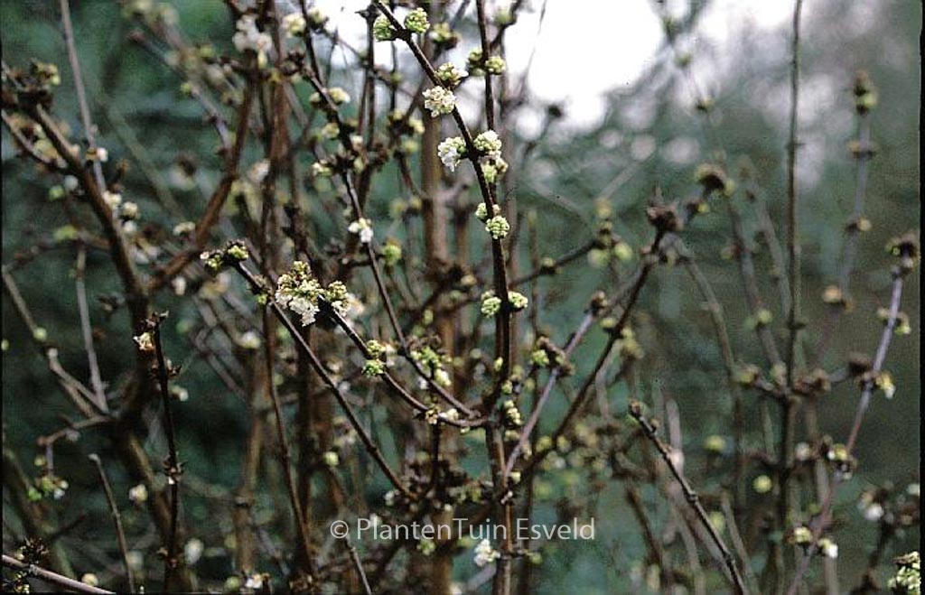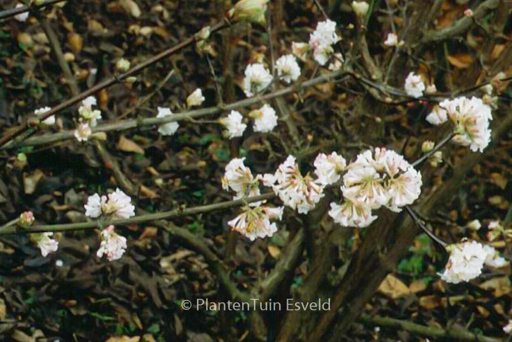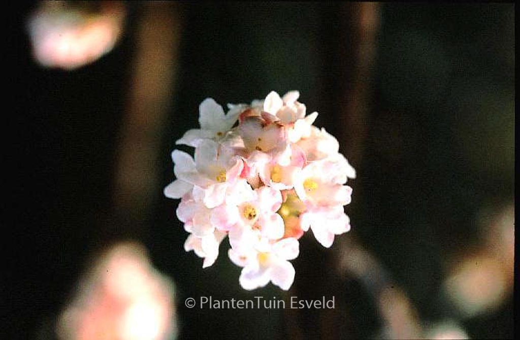 winterbloeiende struik geurende trosbloemen. De hoogte na 10 jaar is 2 meter. De bloemkleur is zeer bleek rose. De bloeiperiode is december – februari. Deze plant is zeer winterhard. Nederlandse naam : Wintersneeuwbal . Deze plant heeft de volgende onderscheiding: AGM, Award of Garden Merit, 1993. . Alleen op bestelling leverbaar. Levertijd minstens 1 week.