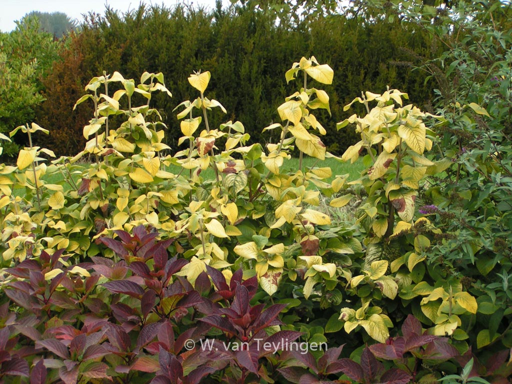 geel, viltig blad, schermb veel rode bessen, wijnrode herfstkl. De hoogte na 10 jaar is 2 meter. De bloemkleur is vuilwit. De bloeiperiode is mei. Deze plant is zeer winterhard. Nederlandse naam : Wollige sneeuwbal . . Alleen op bestelling leverbaar. Levertijd minstens 1 week.